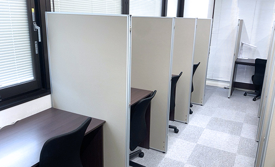 集中力を高めるために、落ち着きとリラックス効果があるダークブラウンの机に統一し、パーテーションも勉強の効率が上がるようにグレーを採用しています。