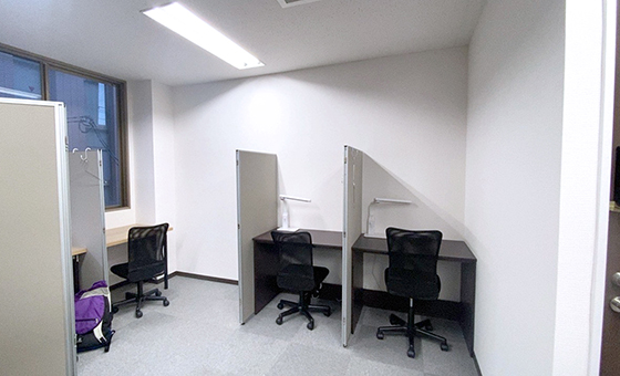 集中力を高めるために、落ち着きとリラックス効果があるダークブラウンの机に統一し、パーテーションも勉強の効率が上がるようにグレーを採用しています。