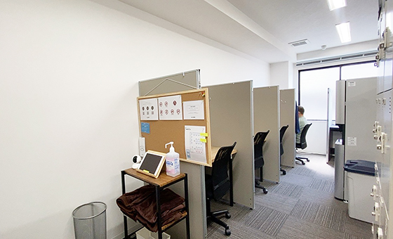 - iPad受付で、すべての利用者の入退室の履歴を取り、(どの席を利用していたかも含めて)セキュリティ面での対策を行っております。